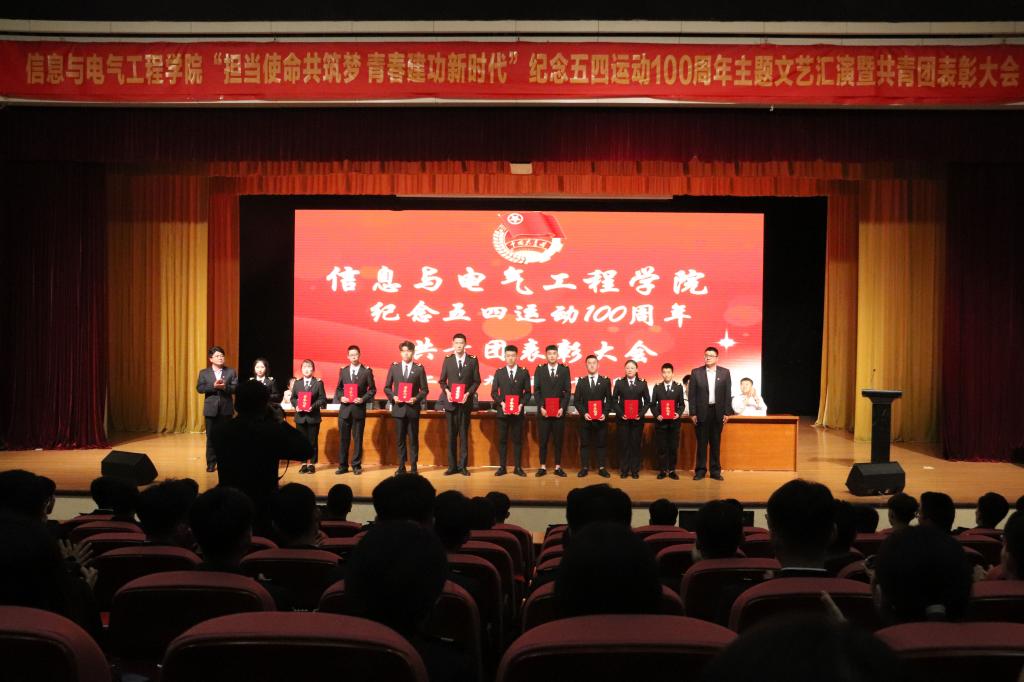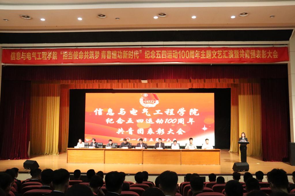 5月16日,信息与电气工程学院召开共青团表彰大会暨纪念五四运动100周年主题文艺汇演。团总支书记周大勇主持表彰大会,全体辅导员老师和2017、2018级学生代表参加。
