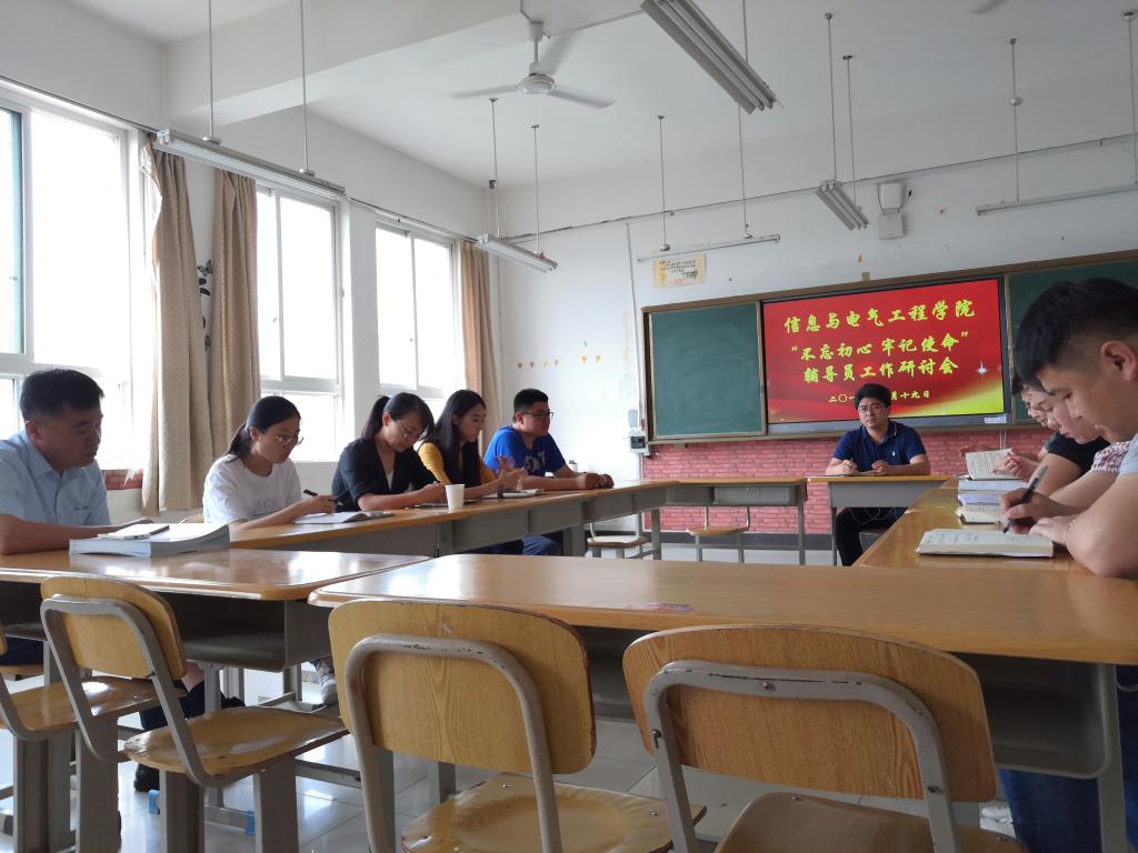 6月19日,信电学院在B6-209召开召开“不忘初心 牢记使命”辅导员工作研讨会,党支部副书记杜元贞主持会议,全体辅导员参加。