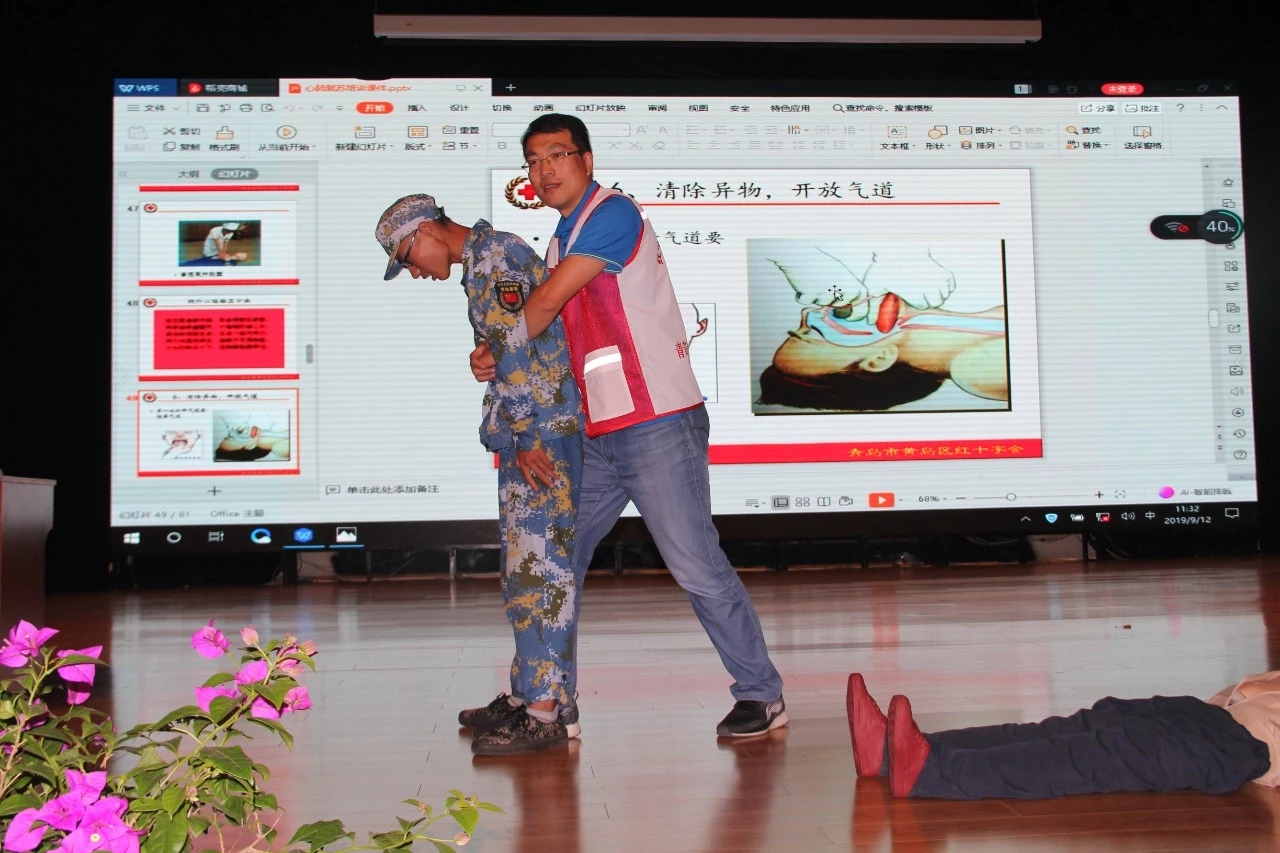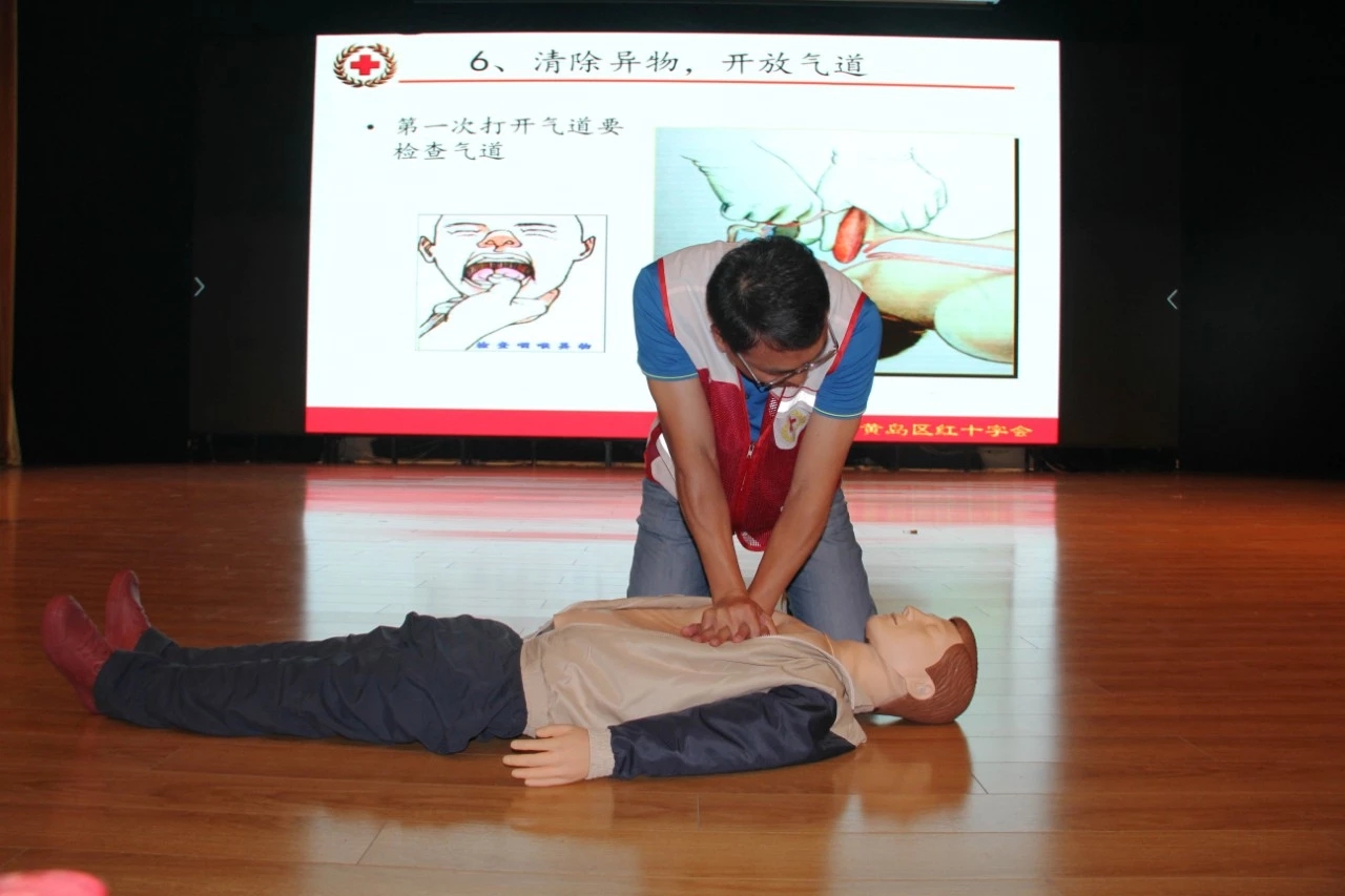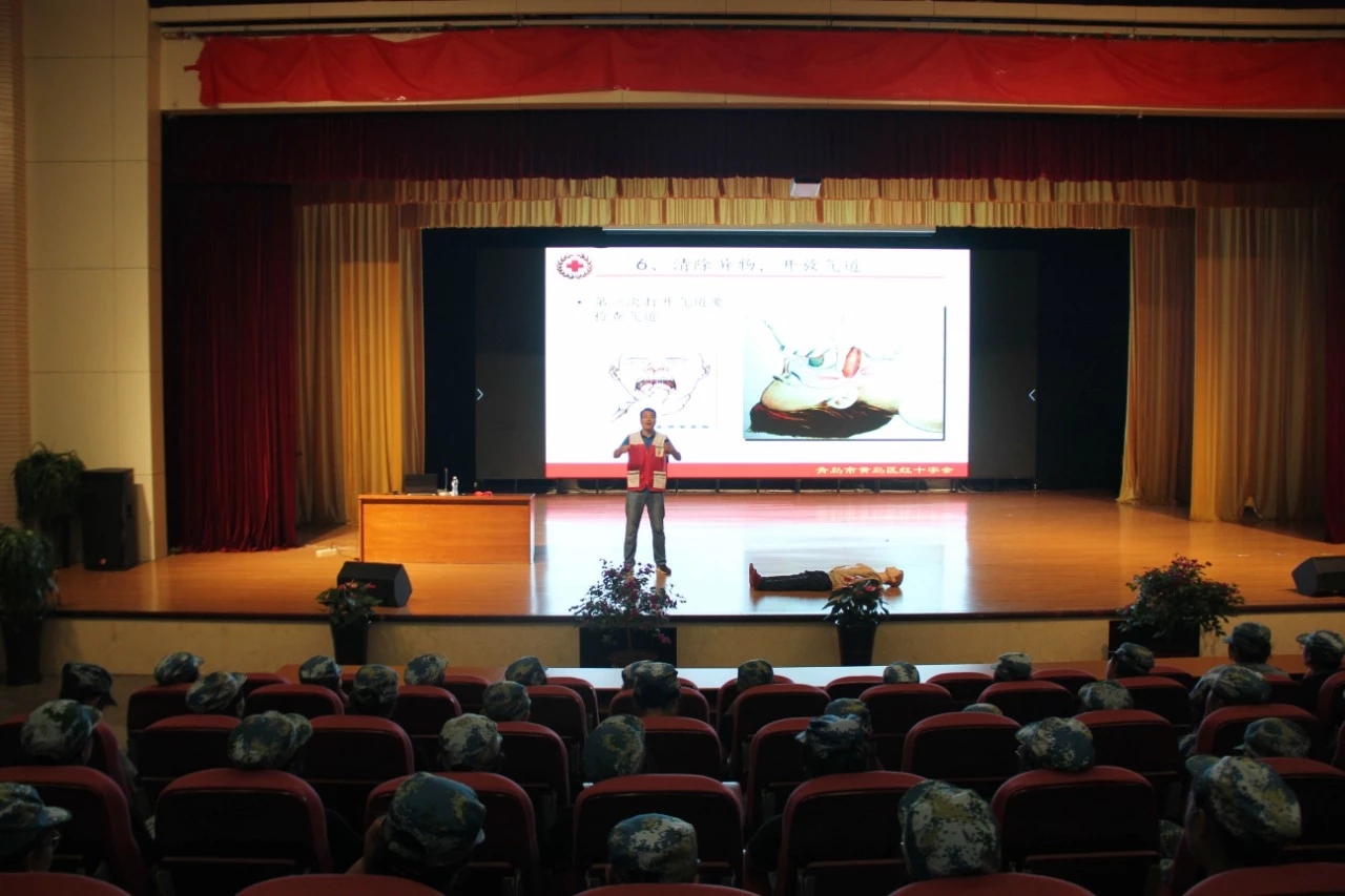 武心庆老师为新生讲解了心肺复苏、人工呼吸、气道异物阻塞、烧烫伤急救、中暑处理、狂犬病预防等一系列安全急救知识,并利用人体模型为大家详细讲解了做胸外心脏按压和人工呼吸的步骤,反复强调其中要注意的关键细节并亲自示范。同学们踊跃回答问题和协助配合,现场气氛非常活跃。