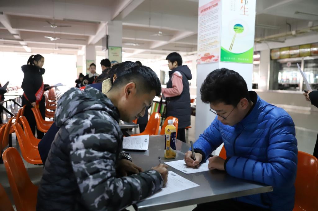 同学们填写登记表