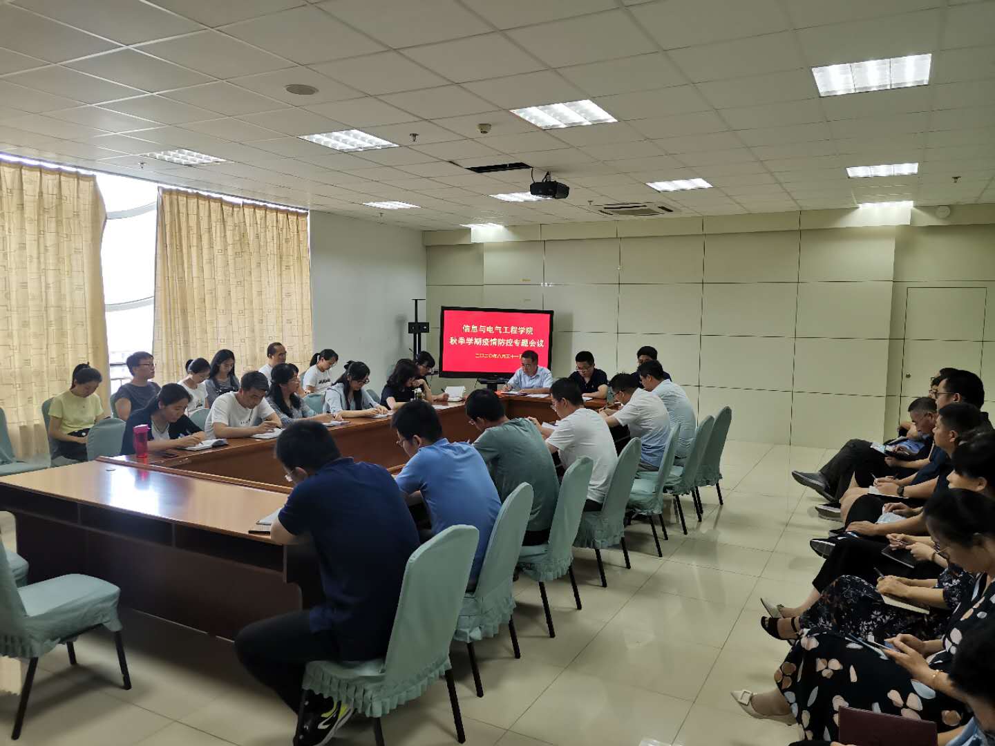 8月31日,信电学院在B-820会议室举行秋季学期疫情防控专题会议。会议由院长苏本知主持,副书记杜元贞、教学副院长盖延亮及学院全体老师参加。