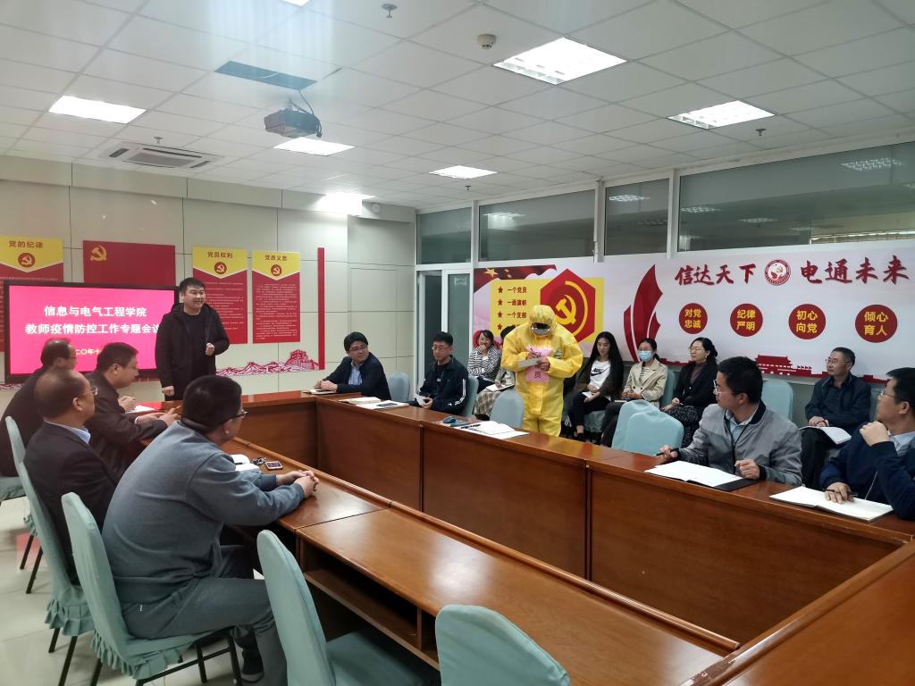 10月27日下午3点,信电学院在B-820会议室组织全体教师开展了疫情防控应急处置演练活动。学院负责人王浩,党支部副书记杜元贞参加了演练活动。