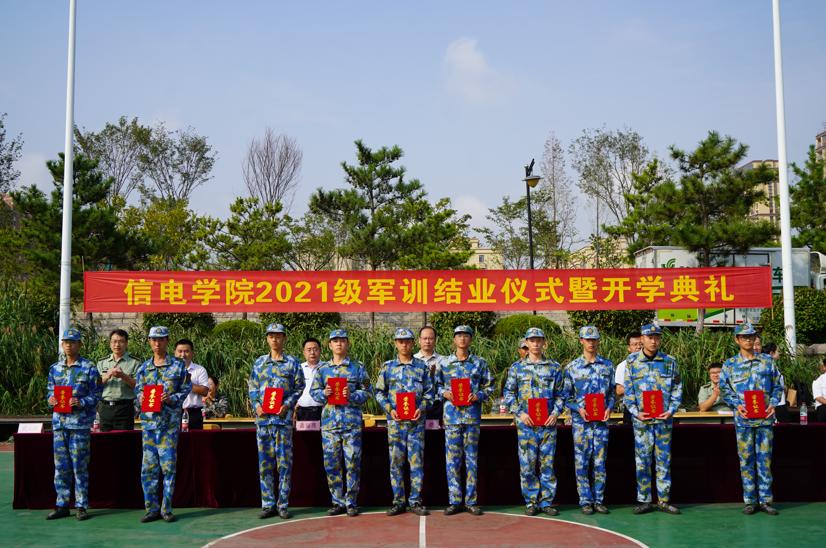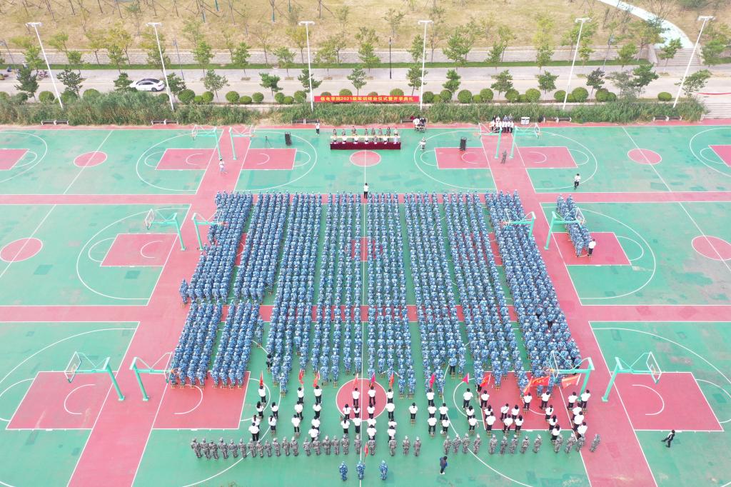 9月17日,信电学院在篮球场举办2021级军训结业仪式暨开学典礼。出席仪式的有陆军济南训练基地接富超上校、科大讯飞总监王家波、山东鲁安主任张启龙、信电学院负责人王浩、副院长盖延亮、数字媒体教研室主任郭健辉教授、全体辅导员老师、全体教官助理、辅导员助理和2021级全体新生。