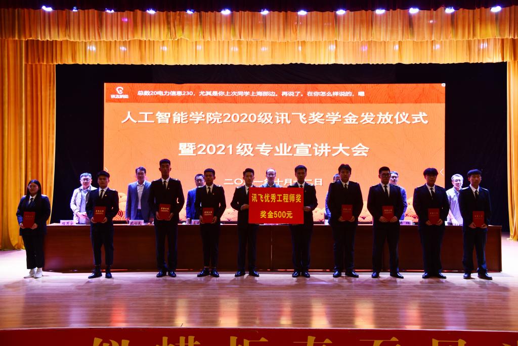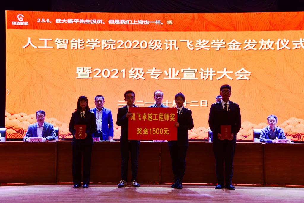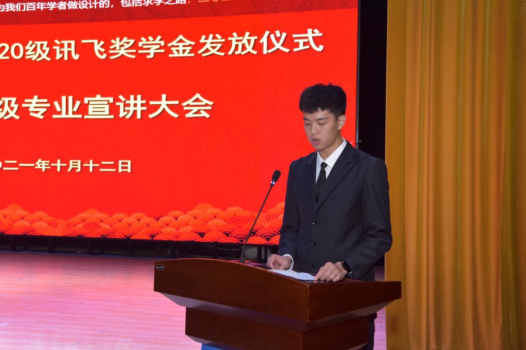 大会首先为20级“科大讯飞卓越工程师奖”“科大讯飞优秀工程师奖”奖学金获得者发放奖金,随后2020级学生代表陈姝含和2021级学术代表杨文轩相继发言,表达了对自己在过去的收获及对当下和未来的自我要求,展示了当代大学生的风貌和劲头。