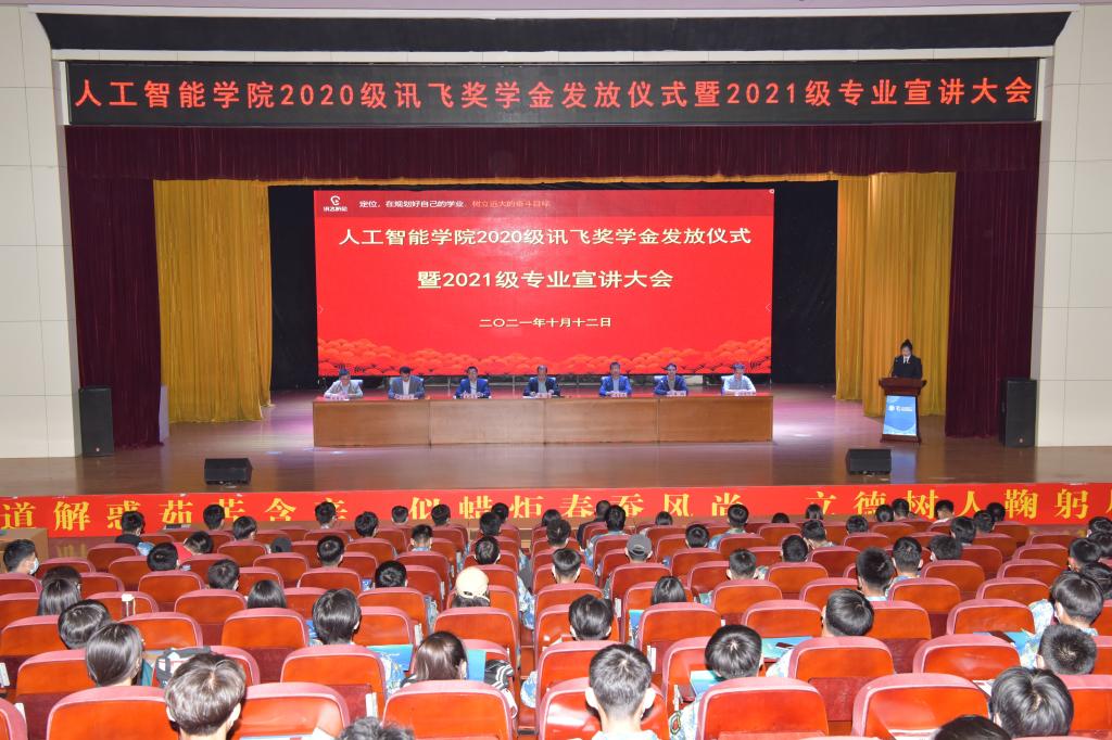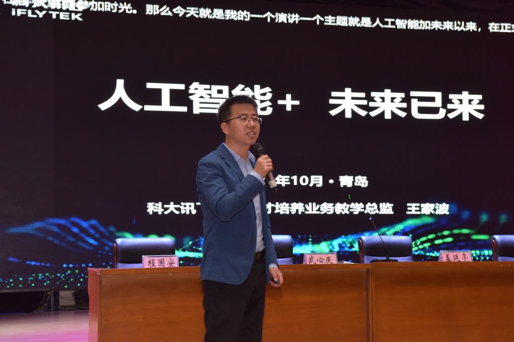 仪式结束后,科大讯飞智慧城市高教业务实施总监王家波给学生们进行了《人工智能现状及发展趋势、专业特色介绍讲座》主题讲座,为学生们讲述了人工智能的发展历程,科大讯飞的人工智能技术,为学生们的后续专业学习带来深入的启发。