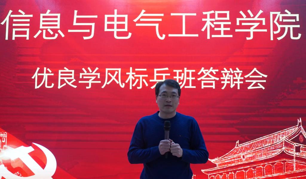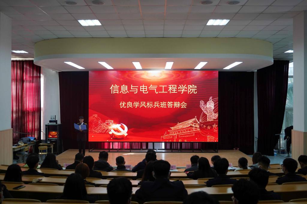 11月26日,信电学院在B5报告厅召开优良学风标兵班答辩会。院长助理武心庆、团总支书记郭鑫、班主任代表宋海振以及学院全体辅导员老师出席会议,全体答辩人员及学生代表参加此次答辩。