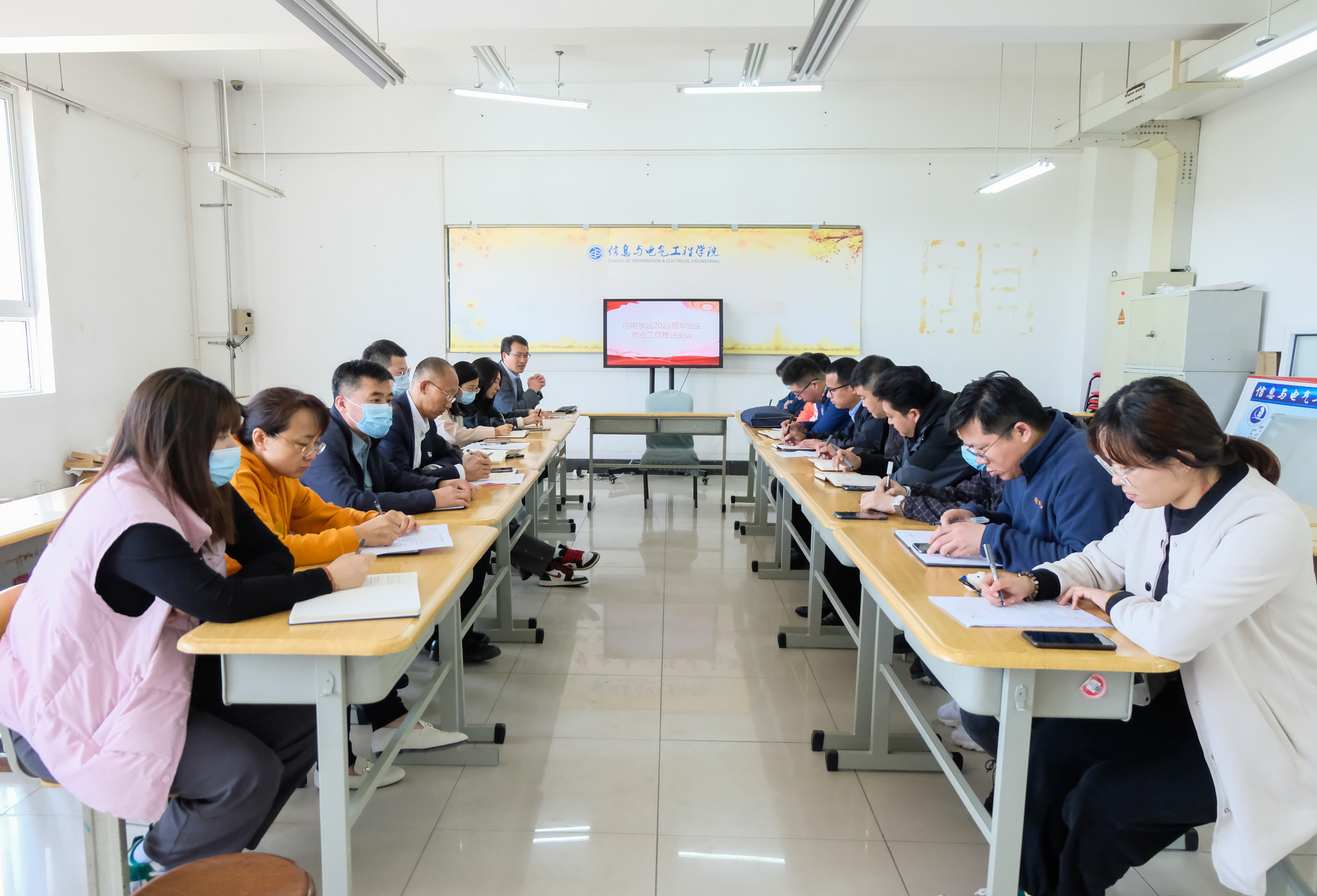 5月6日,信电学院在B6-316召开2023届毕业生就业工作推进会,信电学院院长助理武心庆、团总支书记郭鑫出席会议,全体辅导员和班主任参加本次会议。