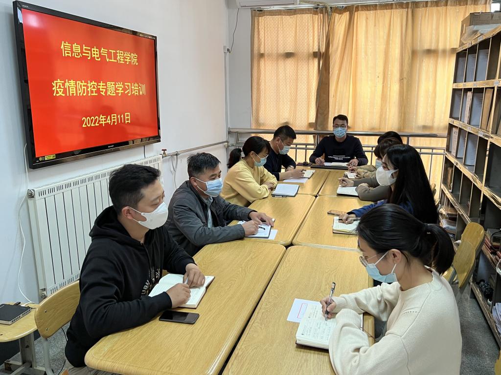4月11日,信电学院在B6-500开展疫情防控专题学习培训,学习学校疫情防控有关规定,会议由院长助理武心庆主持,学院全体辅导员参会。