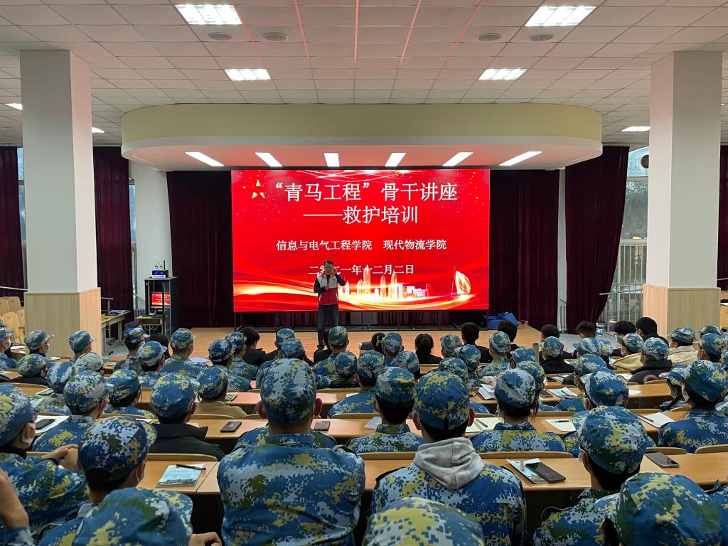 12月2日,信电学院和物流学院在B5报告厅开展“青马工程”骨干救护培训讲座。讲座由院长助理武心庆主持,信电学院、物流学院20级学生干部和21级新生骨干参加培训。