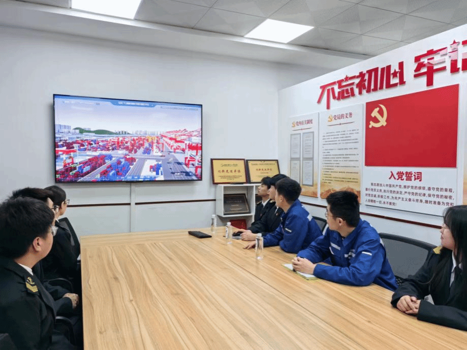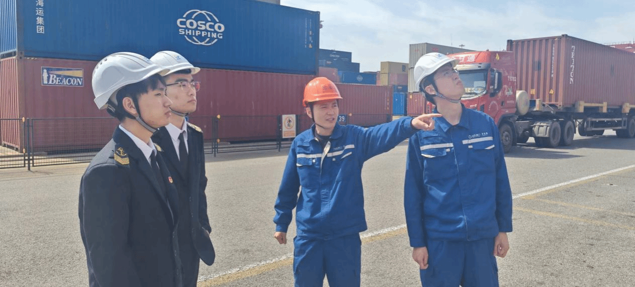 师生又来到青岛前湾联合集装箱码头有限责任公司(QQCTU),学习该平台的实际应用情况。QQCTU工程师庄术杰为学生们演示了利用该平台生成的实时码头场景,并讲解了该平台在全局规划、精准复现历史作业过程、预测未来发展态势方面的应用价值。随后,带领学生们来到码头一线现场学习。