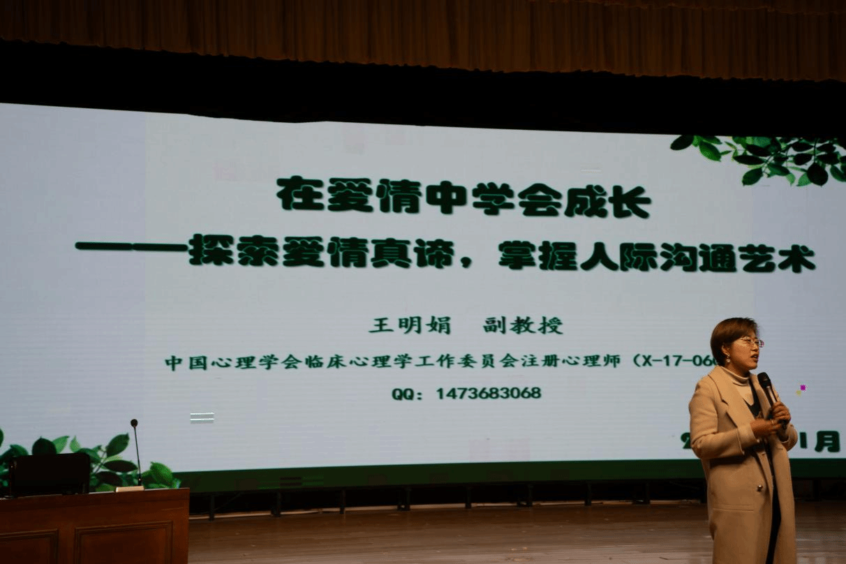 讲座以趣味的测验作为开场,通过一个个鲜活的人物小故事,使同学们对爱情、道德、事业、金钱、性以及家庭的内涵有了更加清晰的认识。王明娟从认识自我、认识他人、理解情感、掌握方法这四个维度,深入剖析了男女双方在差异以及对爱情的不同看法。在互动环节中,在场同学们积极提出自己在爱情中遇到的困惑和疑问,王明娟耐心地一一解答,给出了专业且具建设性的建议,并着重强调了自爱与互爱的重要性。