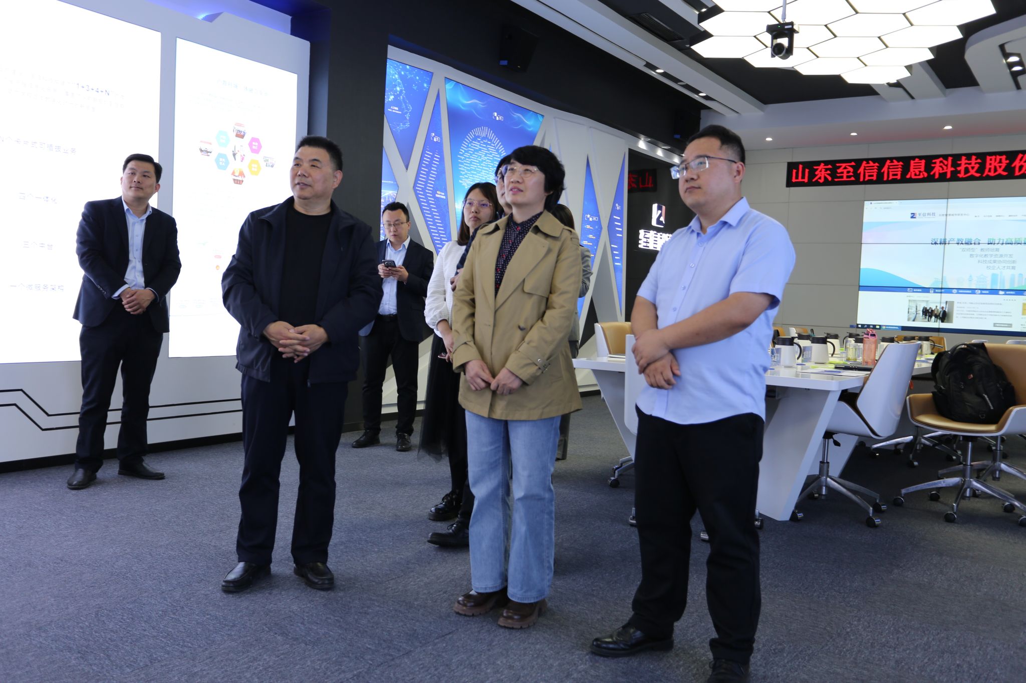 在日照职业技术学院座谈会上,双方以“人工智能+职业教育”融合创新为主题展开探讨。双方就技能大赛梯队培养机制、人工智能通识课程建设、“校中厂、厂中校”等生产性实训基地建设等展开了深入交流。随后对至信科技华为根技术产教融合实践中心进行参观,并现场观摩“双师型”教师实训基地、数字化教学资源开发平台等校企合作成果。至信科技张文龙表示,依托华为ICT技术生态,已形成“课程共研-场景共建-人才共育”的产教闭环,为校企协同服务区域数字经济转型提供范本。