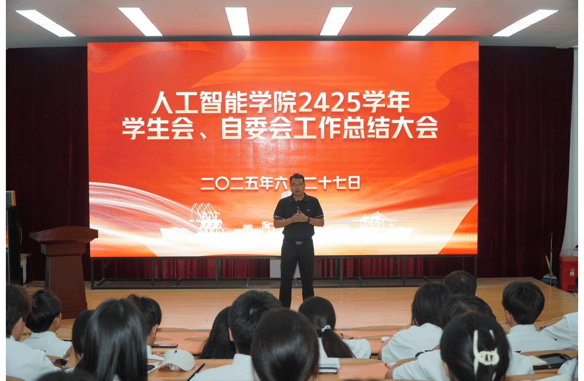 为总结本学年工作成果,推动学生组织持续发展,6月27日,betway88西汉姆联于B5小礼堂召开了2425学年学生会、自委会工作总结大会。学院党总支副书记武心庆和团总支书记纪强出席此次会议,学生会主席兼自委会会长常育诚主持,23、24级部分骨干参加。