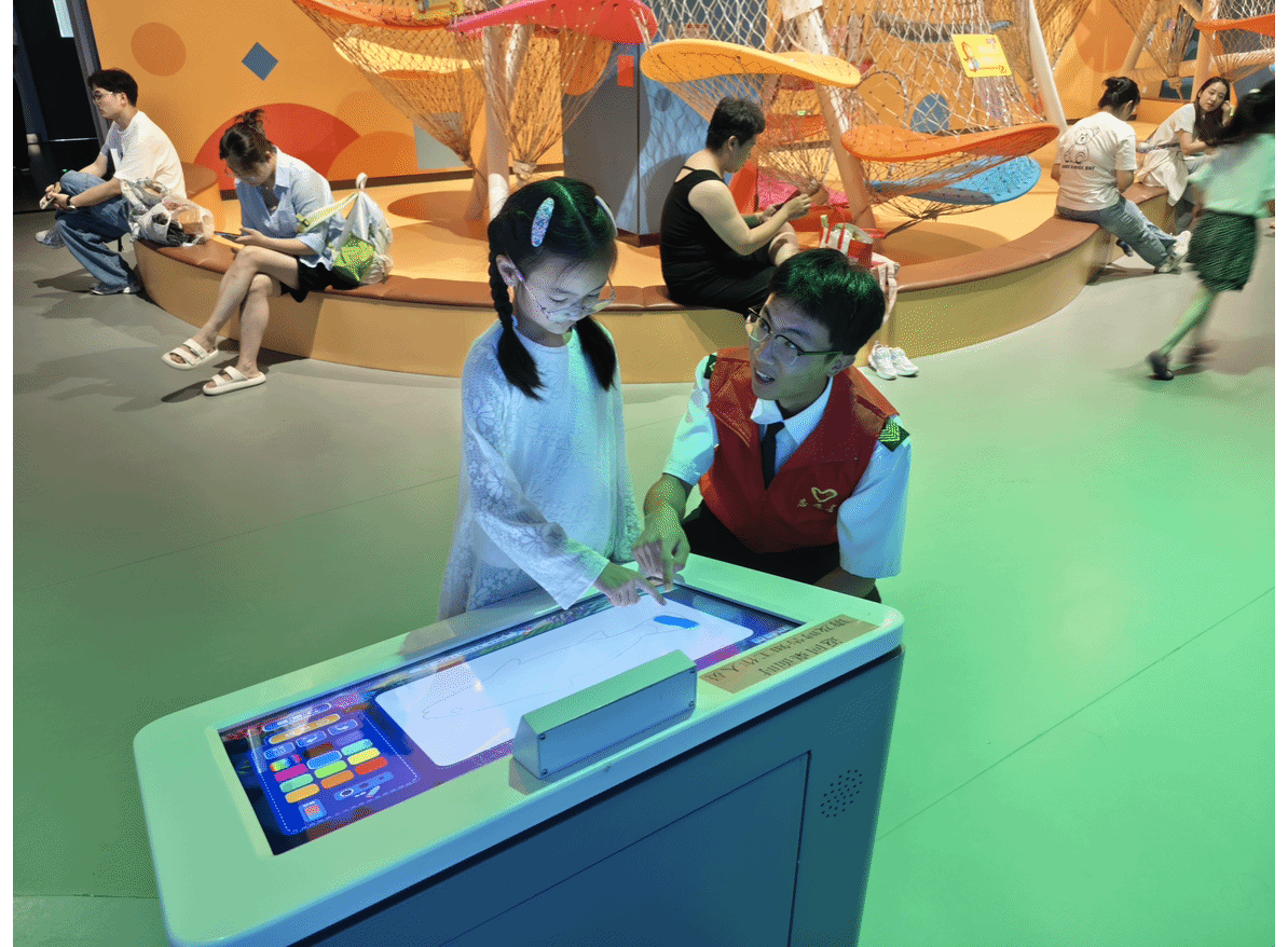 在科技馆工作人员的指导下,志愿者们分为三组开展服务:第一组负责智能科技展区的讲解工作,用通俗易懂的语言向参观者介绍科技馆的各种设施;第二组协助开展科技互动体验活动,指导参观者操作虚拟设备、智能机器人等展项;第三组则承担场馆引导工作,为参观者提供路线指引和咨询服务,同时,志愿者们还通过趣味互动的方式向青少年普及了人工智能基础知识。