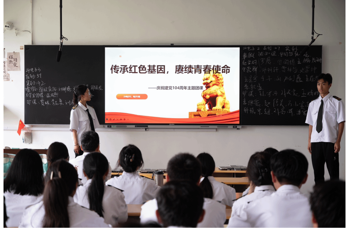 团课上,团支书们首先带领同学们回顾了中国共产党104年来的光辉历程,深刻体悟红色基因的精神内涵。会上共同学习了优秀共产党员的先进事迹,并结合自身实际,就如何赓续红色血脉、担当青春使命展开了论述。最后,团支书号召全体同学在今后的学习和生活中,以实际行动践行“请党放心,强国有我”的青春誓言,坚定不移听党话、跟党走,让红色基因代代相传。