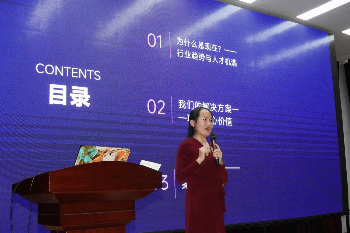 讲座中,张丹丹以行业趋势与人才机遇为主题,通过具体行业案例解析了短视频的多重作用,展示了校企慧与高校共同打造的真实项目进课堂合作成果。