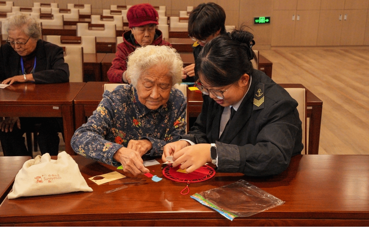 活动现场,志愿者们一对一陪伴老人手工制作纪念品,耐心讲解步骤、细心协助共同完成,随后,志愿者合唱团献上的敬老主题歌曲表演,歌声与真情浸润人心,现场氛围温馨动人。最后,志愿活动在合影中画上圆满句号。