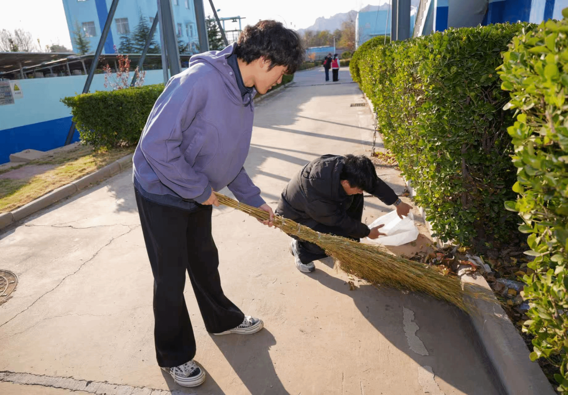 活动中,志愿者们分工协作,有序开展环境整治。一组清理厂区内的白色垃圾和杂草枯枝,另一组收集散落果实交由工作人员统一处理,并对休息区、垃圾中转站等重点区域进行全面消杀。大家以饱满的热情投入劳动,展现了青马学子良好的精神风貌。